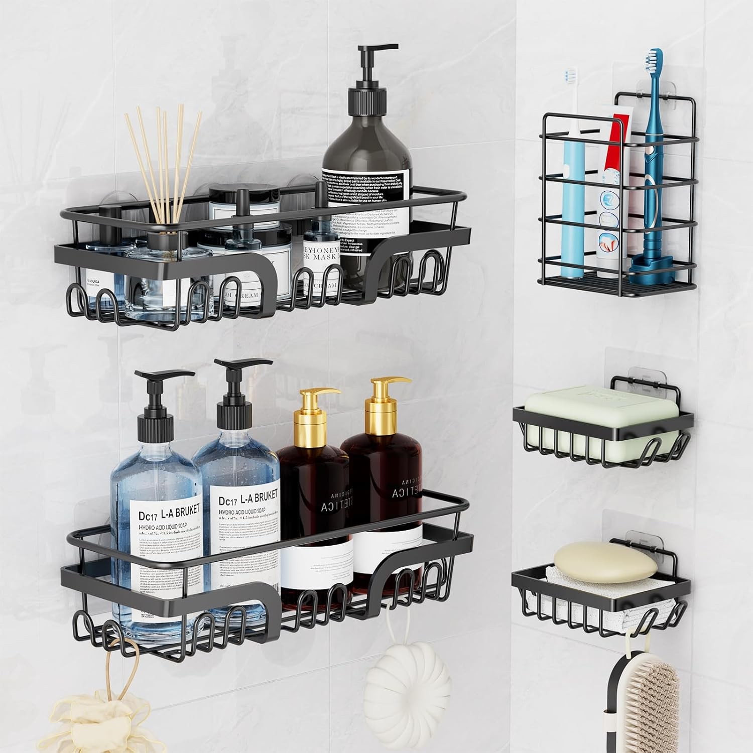 Black bathroom shelves