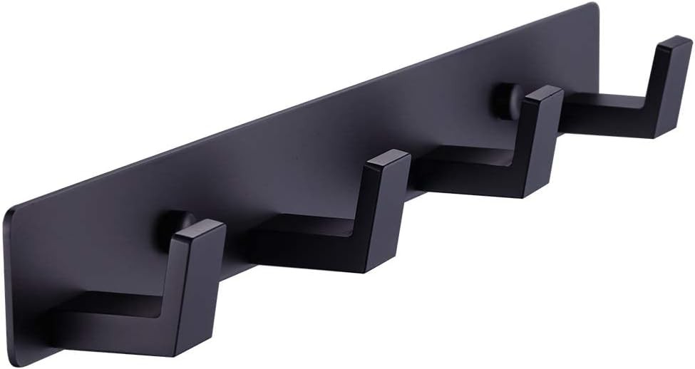 BOOKARROW 4 Matte Black Bathroom Towel Hooks - Wall Mount Screw Fixed Door Hook - Heavy Duty Coat Hanger - Stainless Steel Robe Rack in Bedroom or Kitchen 410B