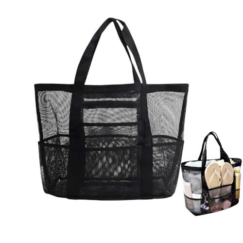 Veemoon Black Beach Bag Mesh Shower Tote Bag for Bathroom Use for Outdoor Travel