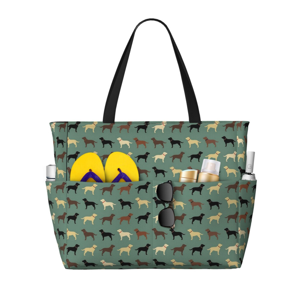 (Labrador Retriever Dog Silhouettes Pattern With Chocolate, Yellow, Red And Black Labs_6313) Beach Bag for Women Large Capacity Waterproof Sandproof T