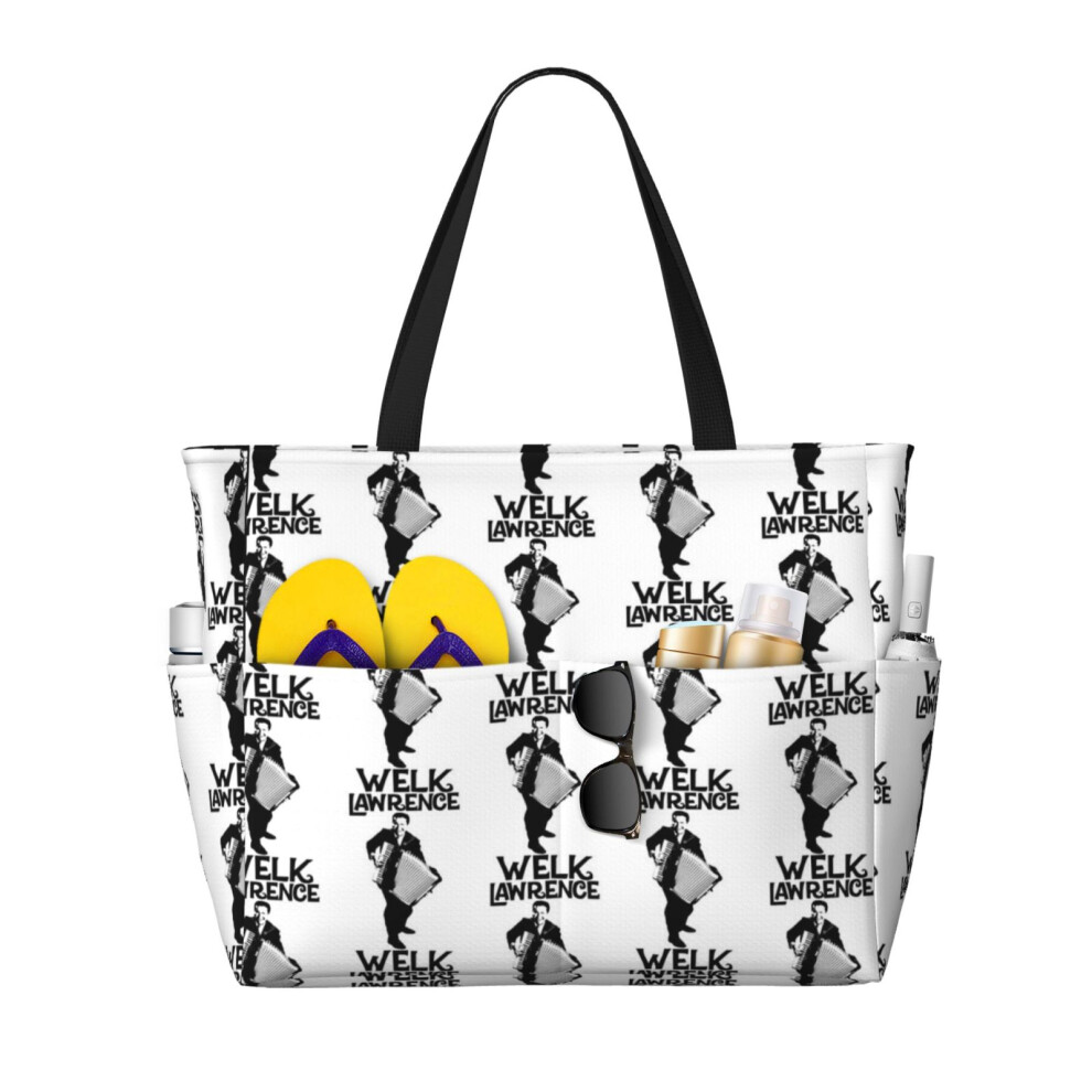 (Lawrence Welk - Name - The Black Stencil_9270) Beach Bag for Women Large Capacity Waterproof Sandproof Tote with 7 Pockets Pool Zipper Bags for Trave