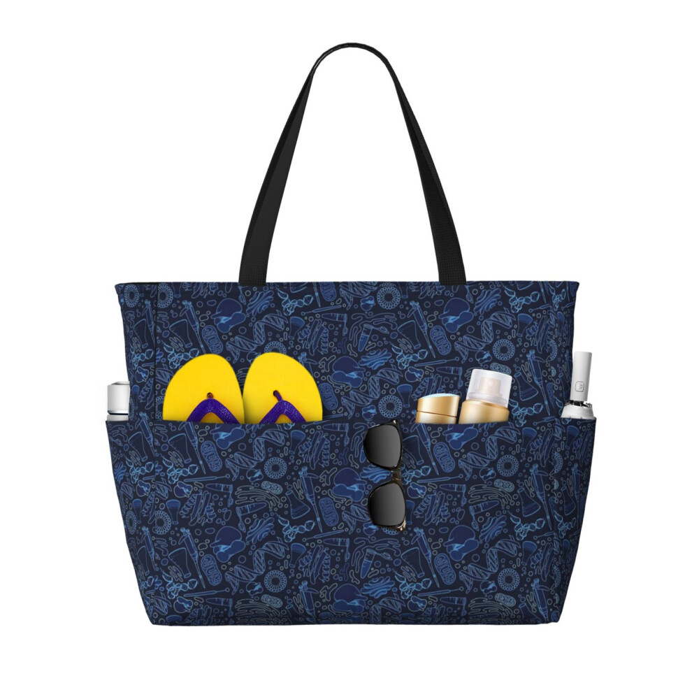 (Lab Jam Black Blue_10092) Beach Bag for Women Large Capacity Waterproof Sandproof Tote with 7 Pockets Pool Zipper Bags for Travel Vacation Gym Campin