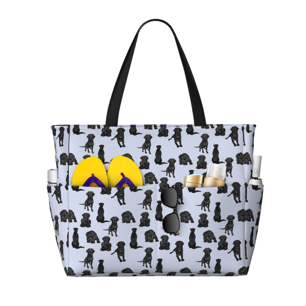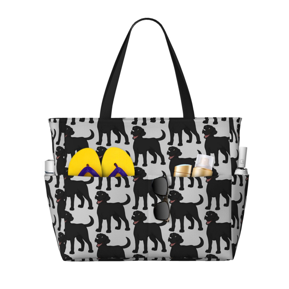 (Black Labrador_9797) Beach Bag for Women Large Capacity Waterproof Sandproof Tote with 7 Pockets Pool Zipper Bags for Travel Vacation Gym Camping Sho