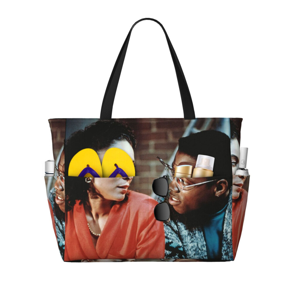 (Black Lyrics_3696) Beach Bag for Women Large Capacity Waterproof Sandproof Tote with 7 Pockets Pool Zipper Bags for Travel Vacation Gym Camping Shopp
