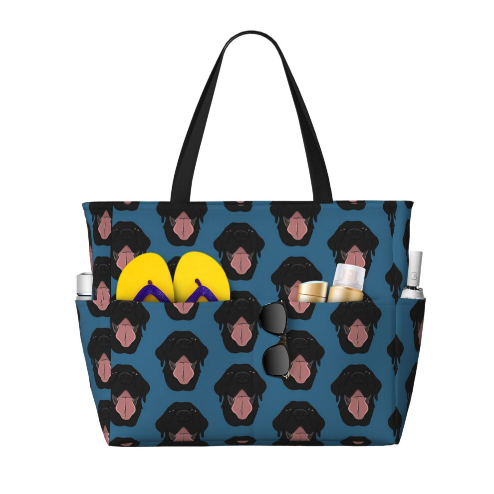 (Bruno The Black Lab_6883) Beach Bag for Women Large Capacity Waterproof Sandproof Tote with 7 Pockets Pool Zipper Bags for Travel Vacation Gym Campin