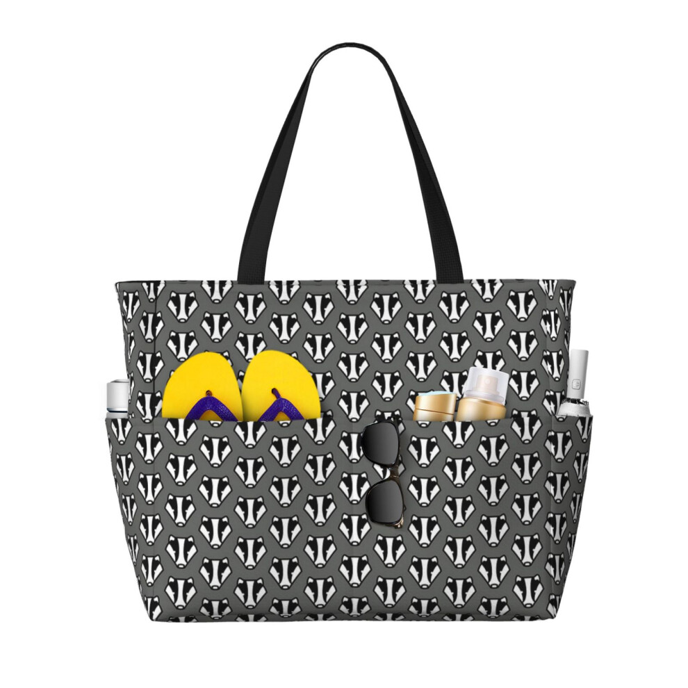 (Badger Badger Badger Grey And Black Design_8055) Beach Bag for Women Large Capacity Waterproof Sandproof Tote with 7 Pockets Pool Zipper Bags for Tra
