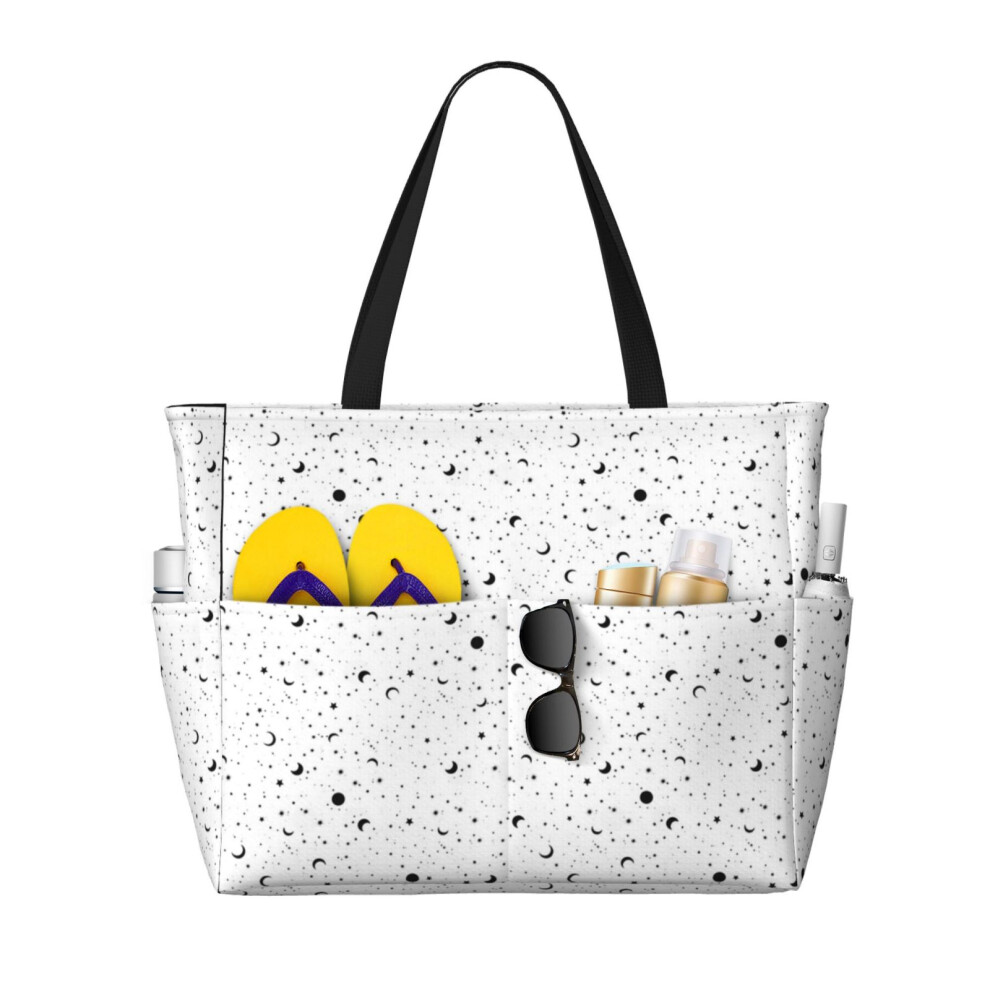 (Black Universe_9017) Beach Bag for Women Large Capacity Waterproof Sandproof Tote with 7 Pockets Pool Zipper Bags for Travel Vacation Gym Camping Sho