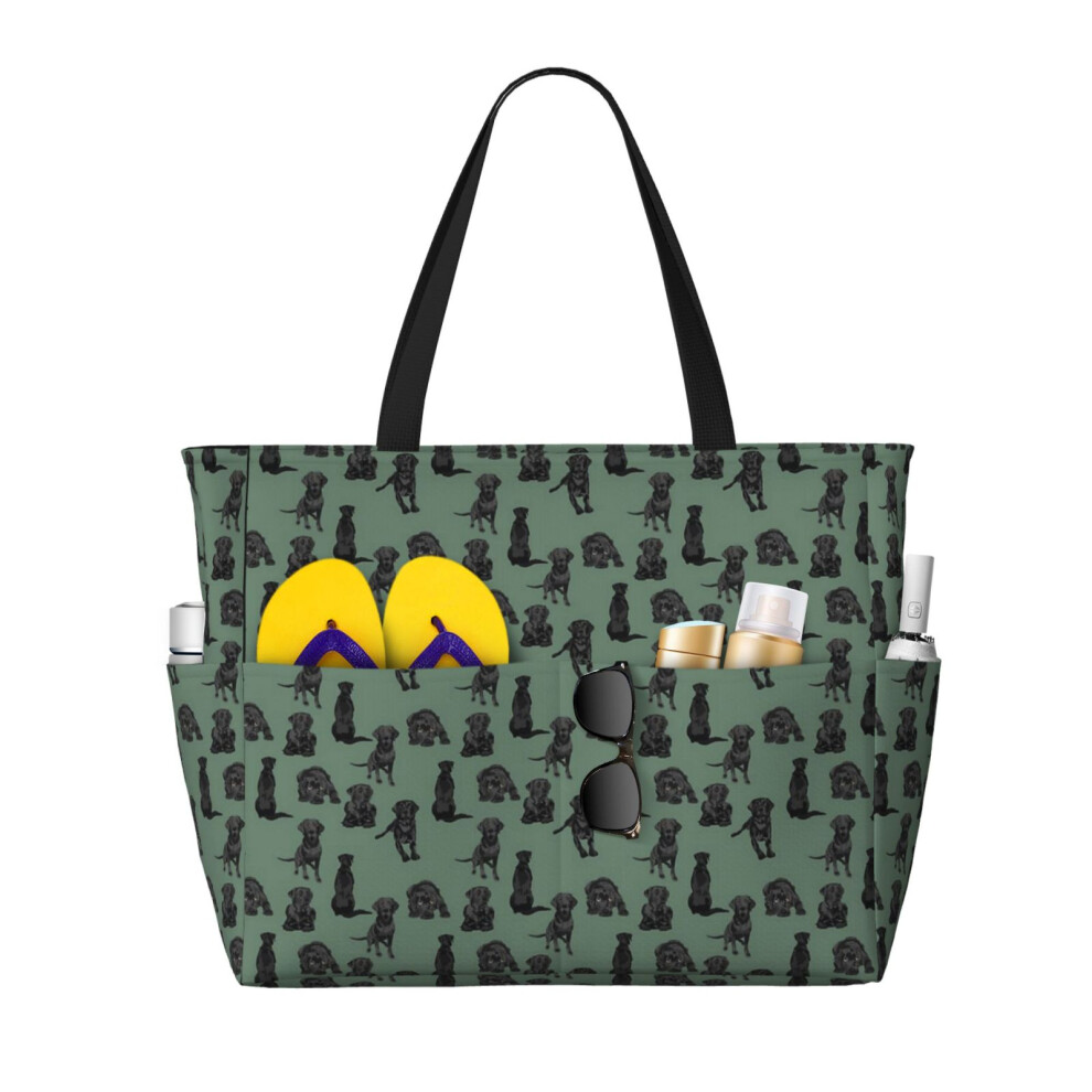 (Black Lab_23053) Beach Bag for Women Large Capacity Waterproof Sandproof Tote with 7 Pockets Pool Zipper Bags for Travel Vacation Gym Camping Shoppin