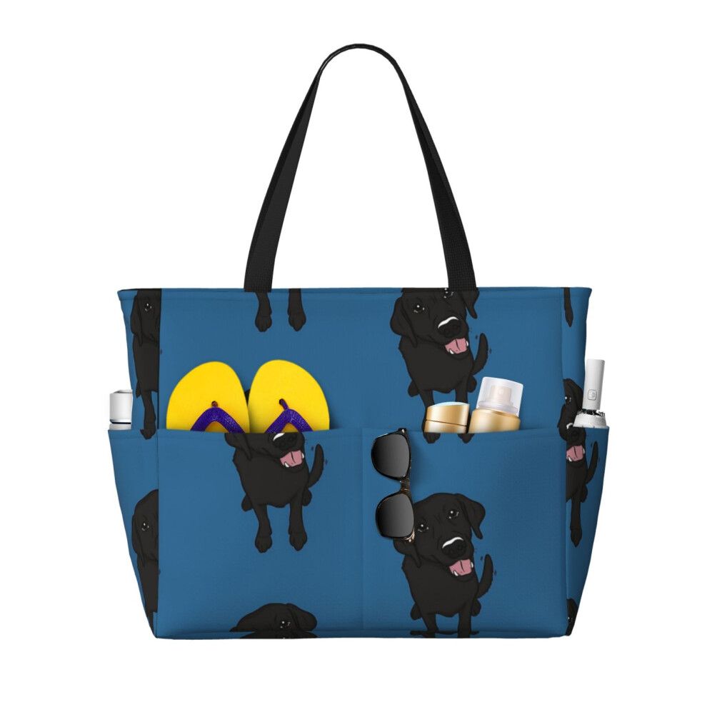 (Black Labrador_7870) Beach Bag for Women Large Capacity Waterproof Sandproof Tote with 7 Pockets Pool Zipper Bags for Travel Vacation Gym Camping Sho