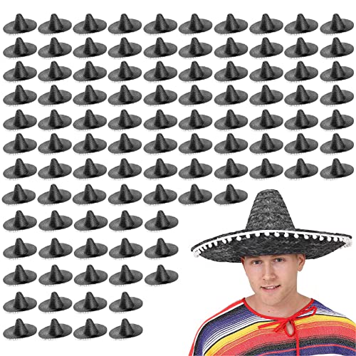 Black Mexican Sombrero - Pack of 6 - Straw Sombrero with White Pom Poms - Straw Hat Fancy Dress Costume Ideal for Hen/stag Night, Summer, Beach Party, Wholesale Bulk