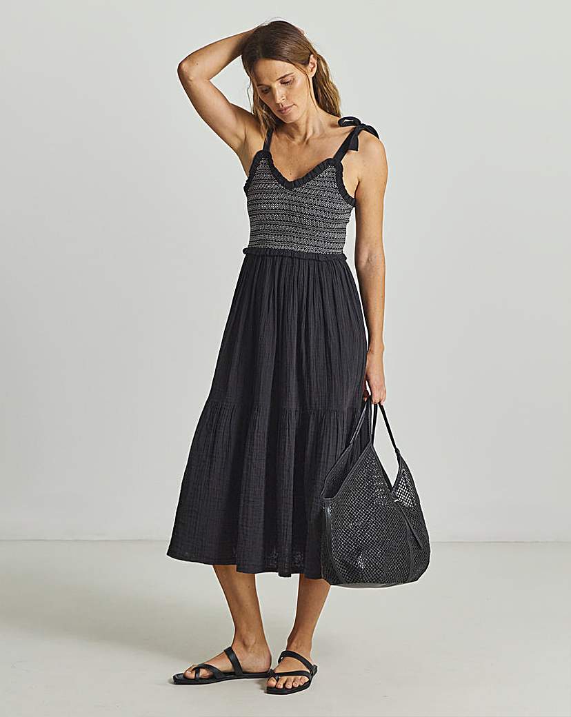 Shirred Beach Dress Black - Beach To Beach - Size: 14
