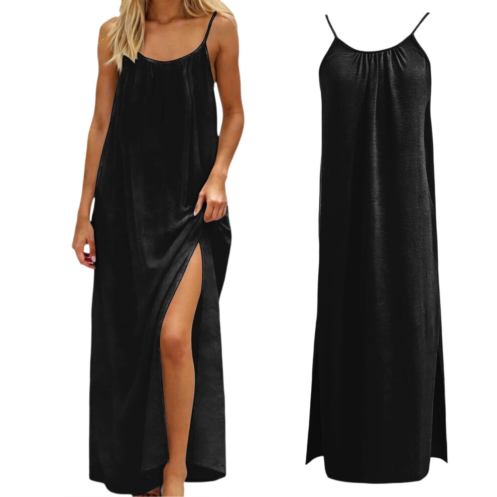 Womens Summer Dresses Sleeveless Backless Cami Dress Split Hem Spaghetti Strap Dresses for Women Black Dresses Beach Dress