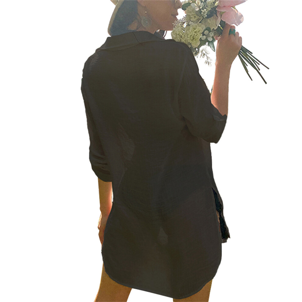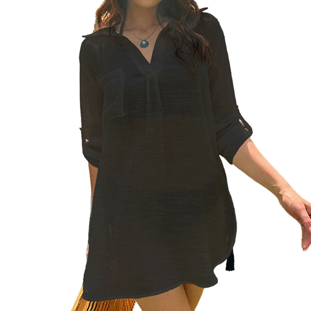 (Black/M) Beach Dress Shirt Cover Up ple Style Long Sleeve Blouse Accessories