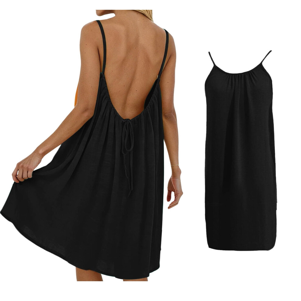 Women's Summer Dresses Sleeveless Backless Dress Spaghetti Flowy Dresses Black Dress Womens Beach Dress