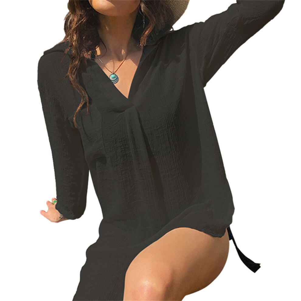 (Black/M) Beach Dress Women's Shirt Fashion Cover Up Universal Long Sleeve