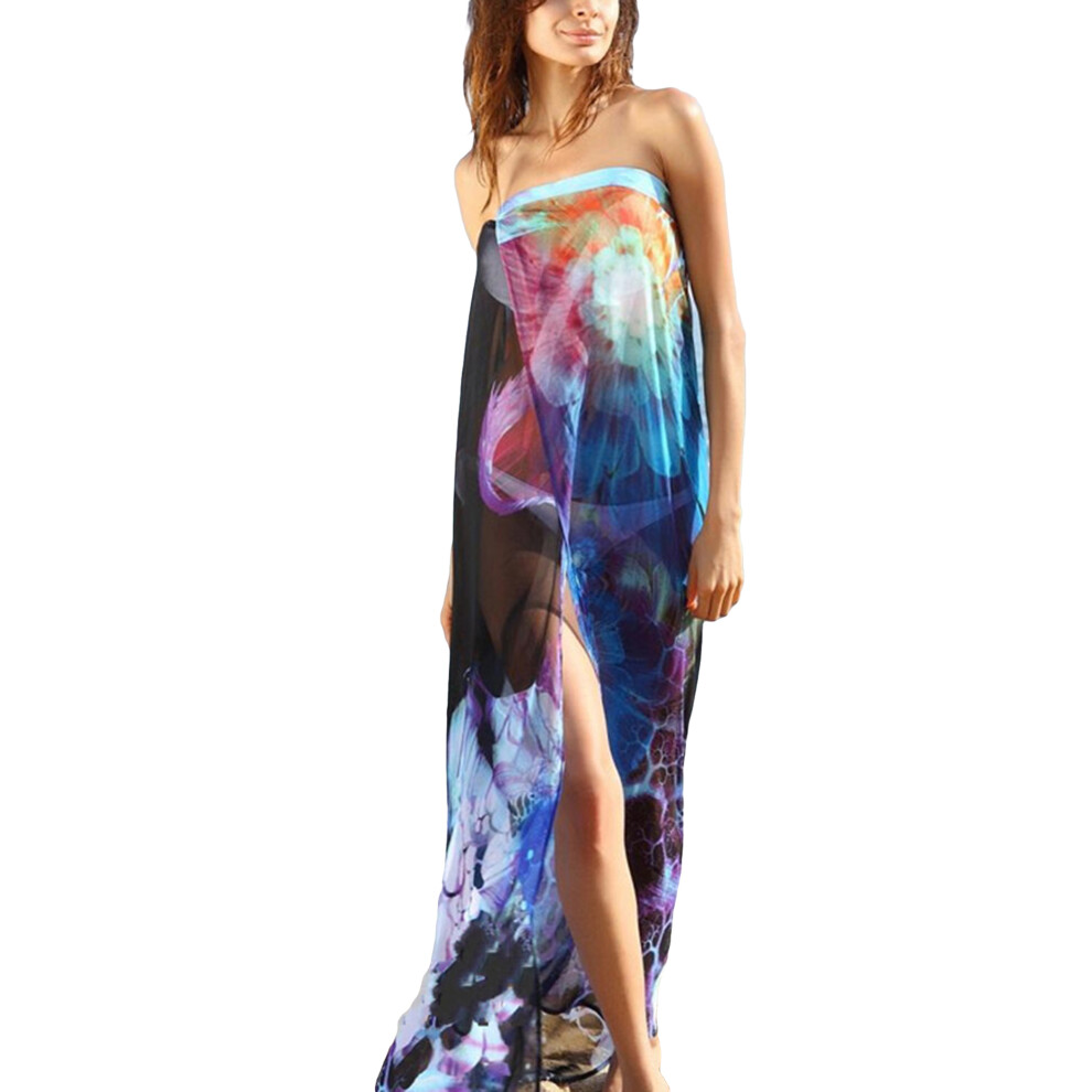(One Size, Black) Female Beach Dress, Tie-Dyed Sleeveless Strapless Long Dress Bikini Cover Ups for Summer, Black/Yellow
