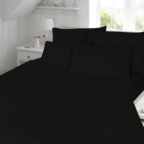 Homespace Direct 180 Thread Count Percale Flat Sheet Soft Bedding Black Double Suitable for Deep Mattresses