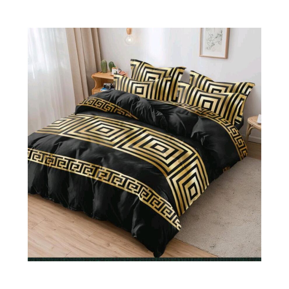 (Marble Black-Gold Bedding, Single) Luxury Greek-Inspired Gold and Silver Square Pattern Bedding Set - 4-Piece