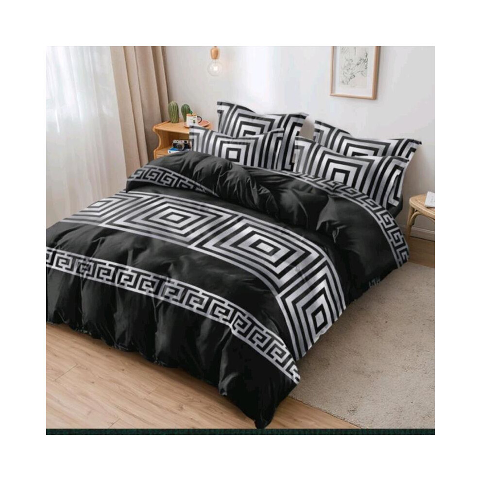 (Black-Silver Square Bedding, Single) Luxury Greek-Inspired Gold and Silver Square Pattern Bedding Set - 4-Piece