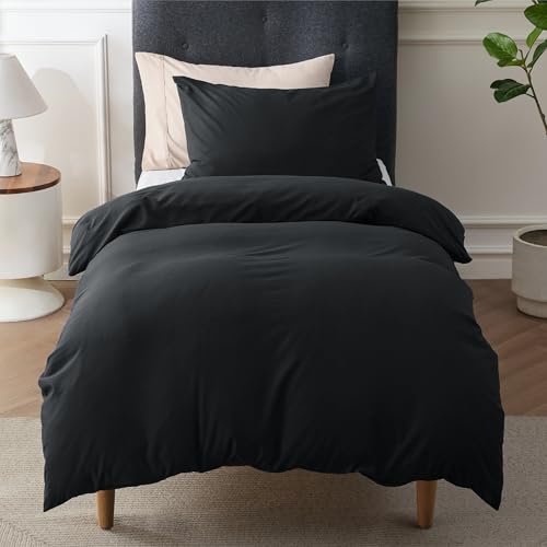 Bedsure Single Duvet Cover Set - Brushed Microfiber Bed Cover Set with Zipper Closure, Black Quilt Bedding Cover with 1 Pillowcase, Black