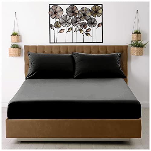 Homespace Direct 180 Thread Count Percale Deep Fitted Sheet Soft Bedding Black King