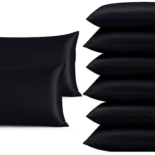 Yorkshire Bedding Black Pillow Cases 8 Pack- Luxury Satin Pillowcase with Envelope Closure, Soft as Silk Pillowcase for Hair and Skin Standard Size Hypoallergenic Pillow Covers (50x75cm)