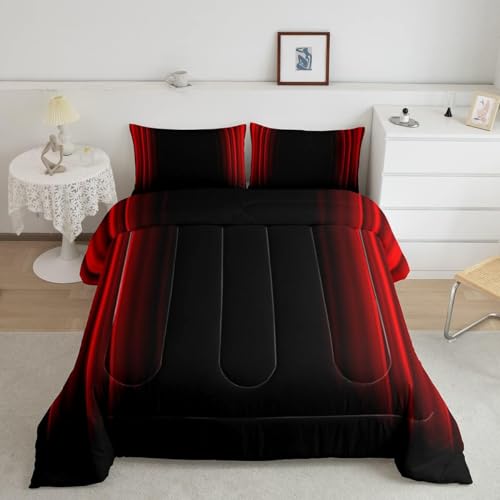 Feelyou Abstract Ombre Comforter Set Kids Teens Red and Black Bedding Set Room Decor 3Pcs Queen Size