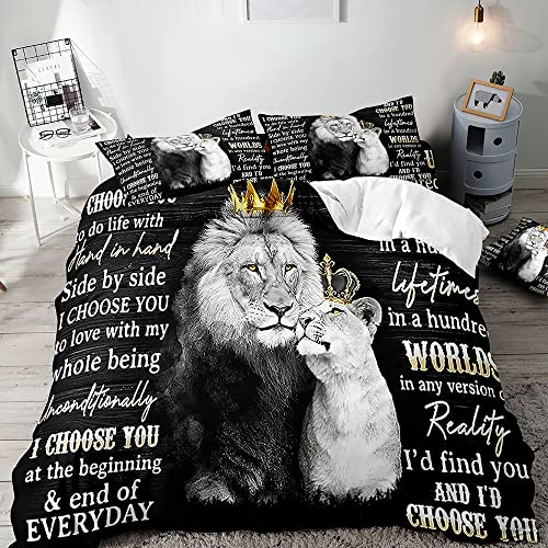 VIVIHOME 3PCS Lion Bedding Set, King Duvet Cover, African Safari Animal Black Bedding, Comforter Cover, Quilt Cover, Bedroom Decor for Couples, Romantic Lion Couple Gifts, I Choose You, 2 Pillowcases