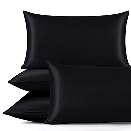 Yorkshire Bedding Black Satin Pillow Cases 4 Pack for Hair and Skin Standard Size Satin Pillowcases with Envelope Closure (50x75cm)
