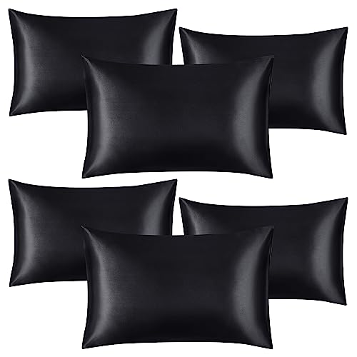 Yorkshire Bedding Black Pillow Cases 6 Pack- Luxury Satin Pillowcases with Envelope Closure, Soft as Silk Pillowcase for Hair and Skin Standard Size Hypoallergenic Pillow Covers (50x75cm)