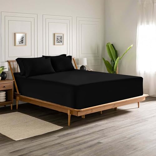 Extra Deep Fitted Sheets Super King - 16"/ 40 CM Plain Dyed Polycotton Deep Pocket Bed Sheet - Elastic Corner Black Bedding Sheet
