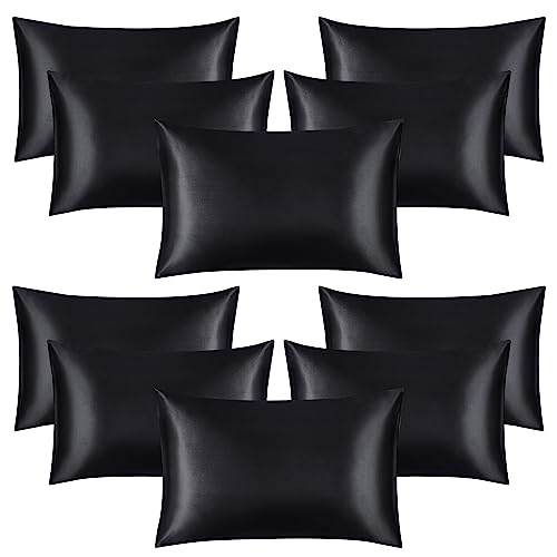 Yorkshire Bedding Black Pillow Cases 10 Pack- Luxury Satin Pillowcases with Envelope Closure, Silky Cooling Pillowcase for Hair and Skin Standard Size Housewife Silk Pillowcase (50x75cm)