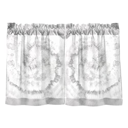 Oyihfvs Black White Tie Dye Swirl Psychedelic Gradient Spiral Dyed Circle Set of 2 Window Kitchen Curtain, Window Curtain Panel, Bathroom Tier Curtain Sets for Home Living Room Bedroom Decor 27x24 in