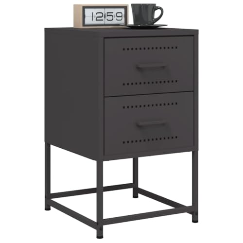 Sufrk Bedside Cabinets 2 pcs Black 36x39x43.5 cm Steel-Bedside Tables Bedside Drawers Cabinet Side End Table Nightstand Storage Organizer Home Stand for Home Bedroom