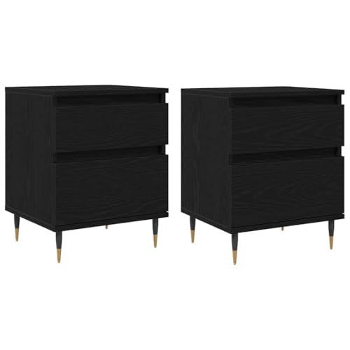 vidaXL - black oak wood bedside cabinets/table set with 2 drawers - sleek minimalist design, durable natural wood veneer - easy assembly - ideal for bedroom/nightstand use