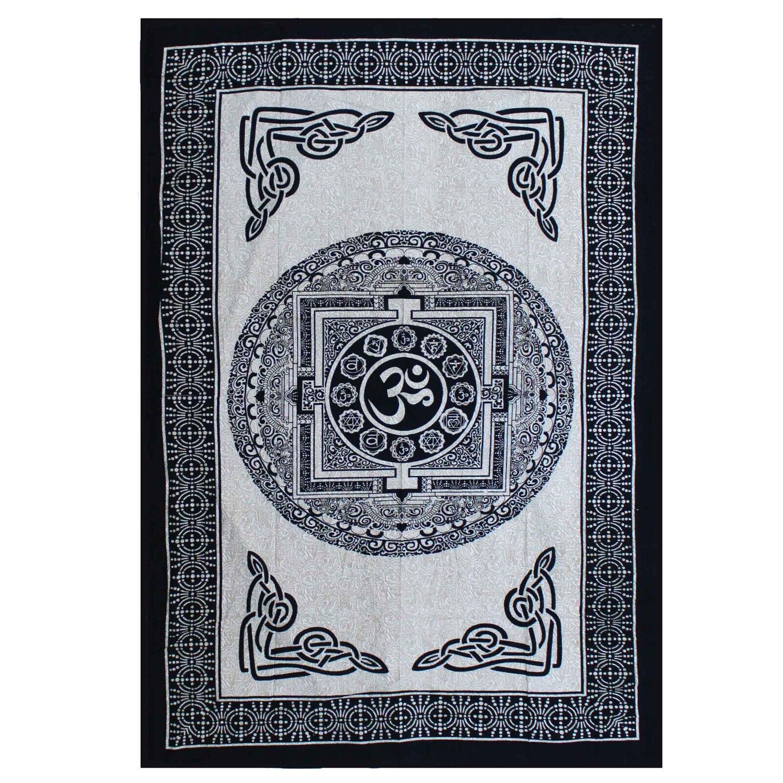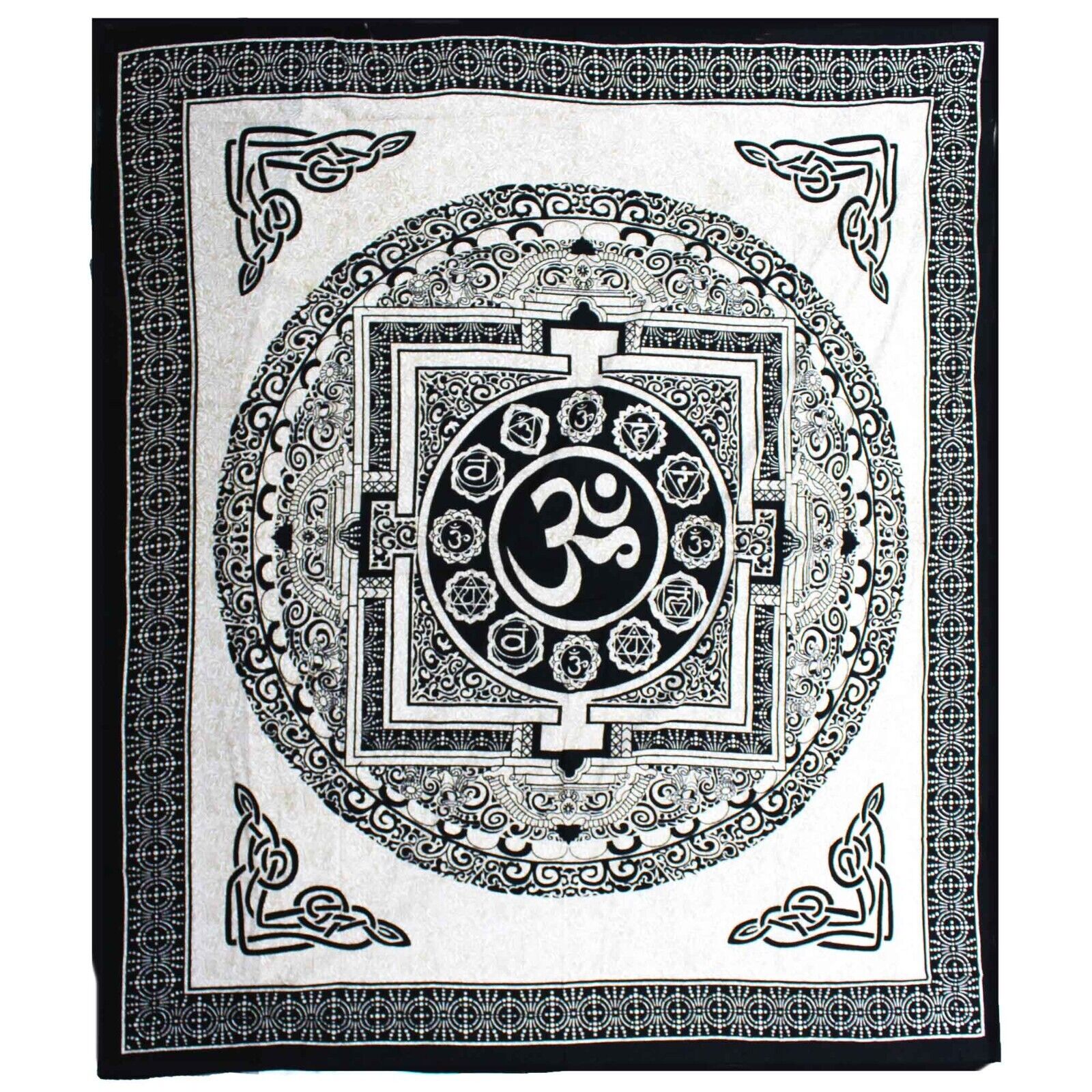 Om Mandala Black & White Cotton Double Bedspread - Wall Picture Hanging