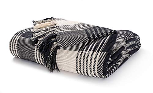 EHC Premium Reversible 100% Cotton Large 150 x 200 cm Tartan Throws for Sofa, Armchair Bedspread, Black