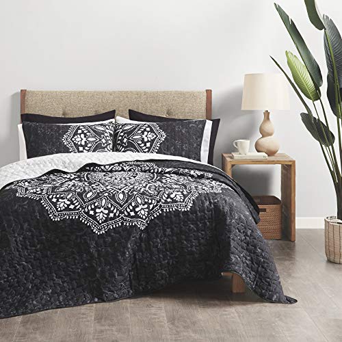 Comfort Spaces Quilt Coverlet Bedspread Ultra Soft Printed Pattern Hypoallergenic Bedding Set, fabric, Coco Black Damask, Twin/Twin XL(66"x90")