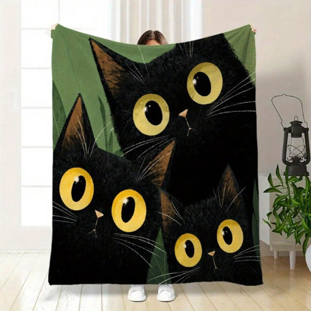 HELLOYOUNG Quilted Flannel Blanket Cat Lovers Black Cat Bedspread Cozy Lightweight Throw for Bed Sofa Living Room Durable Machine Washable Gift