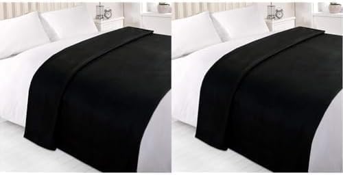 Dreamscene Warm Polar Fleece Throw Over Soft Sofa Bed Blanket Bedspread, Plain Black - 120 x 150 cm (Pack of 2)