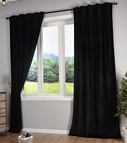 Gardinenbox Milano 20357 Blackout Curtain Velvet Opaque Tab Tape Drawstring Blackout Can Be Shortened Black 2 Pieces H x W 280 x 135 cm