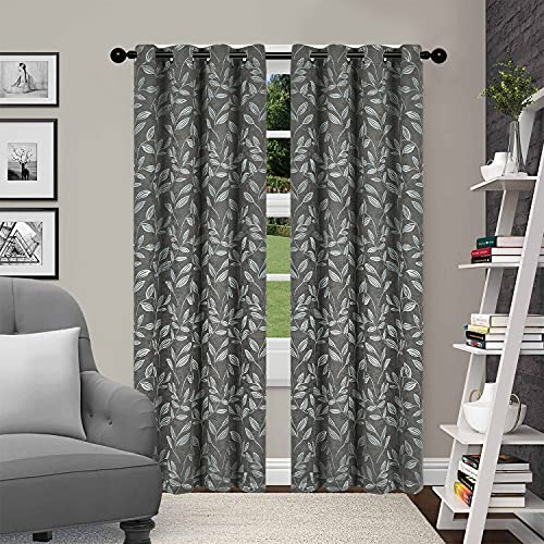 Dreamscene Eyelet Blackout Curtains Grey, Decorative Black Out Curtain for Bedroom Living Room Soft Modern Thermal Lined Blackout Curtains 2 Panels, 66x72”