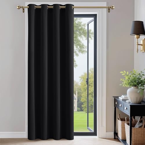PONY DANCE Thermal Blackout Door Curtain - Black Door Curtain Room Darkening Window Drape for Nursery Room/Living Room, W 52-inch by D 95-inch, Single Panel