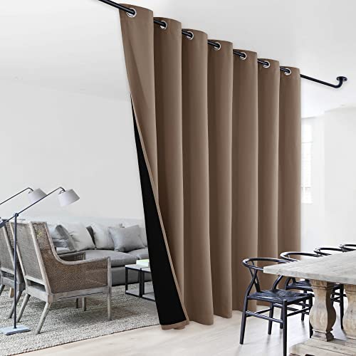 NICETOWN Thermal Insulated 100% Blackout Curtain, Noise Reducing Performance Grommet Slider Curtain Panel with Black Lining for Office and Hotel Window (1 PC, 100 inches x 108 inches, Taupe)