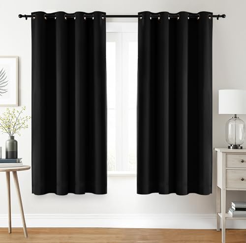 Utopia Bedding Blackout Curtains Grommet Thermal 2 Panels Drapes [Black, 52 x 63 Inches] Sound Insulated Curtain for Bedroom and Living Room