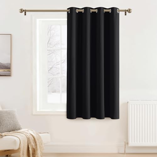 PONY DANCE Blackout Short Curtain - Eyelet Halloween Decor Thermal Curtains for Bedroom/Living Room Privacy Protection Window Treatments for Night Shifts Good Sleep, Black, 2 Pieces, W 52" x L 54"