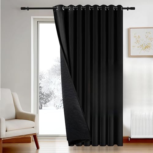 Deconovo Thermal Insulated Curtain for Door, Cold Resistant Blackout Curtain with Thick Microfiber Quilted Lining, Noise Reducing Eyelet Curtain for Living Room, 100 x 84 Inch, Black, 1 Panel