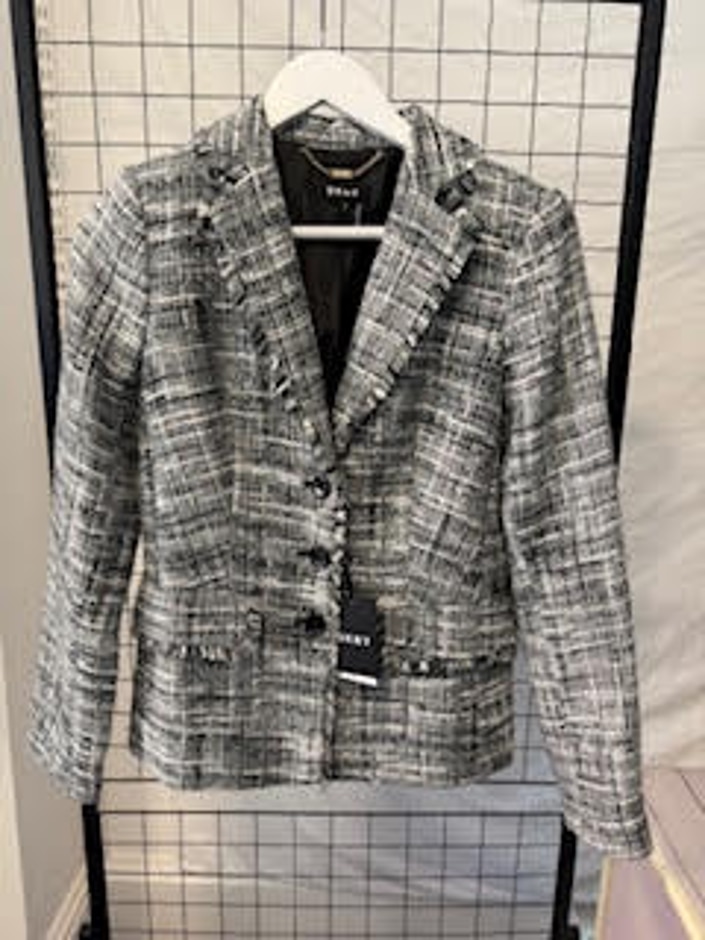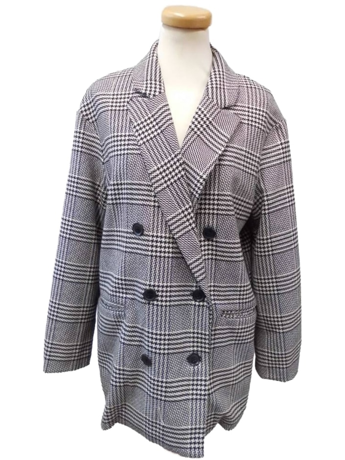 H&M Textured Weave Blazer Jacket Black White Check Double Breasted BNWT Small
