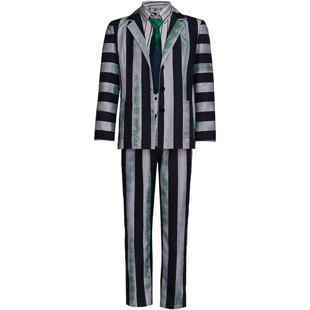 (M, Striped) Tim Burton Costumes for Men The Musical Adam Black White Vertical Striped Horror Costume Blazer Suit