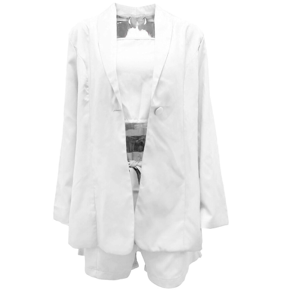 (XS, Black) Women Summer High Waisted Belted Shorts Business Suit Open Front Button Blazer Suit Crop Tops Three-Pieces Blazer Sets White XS